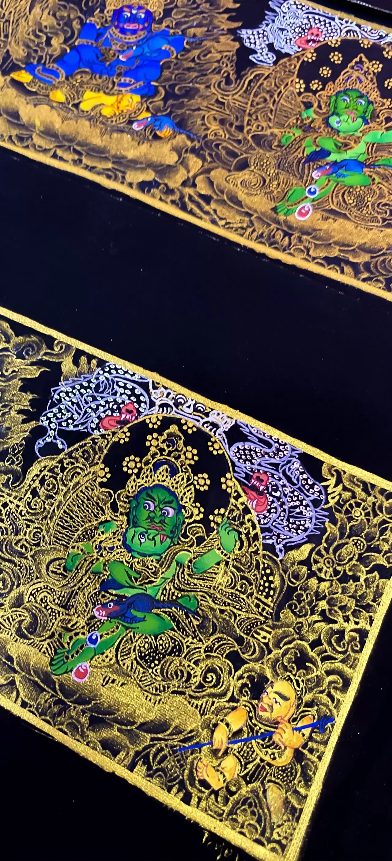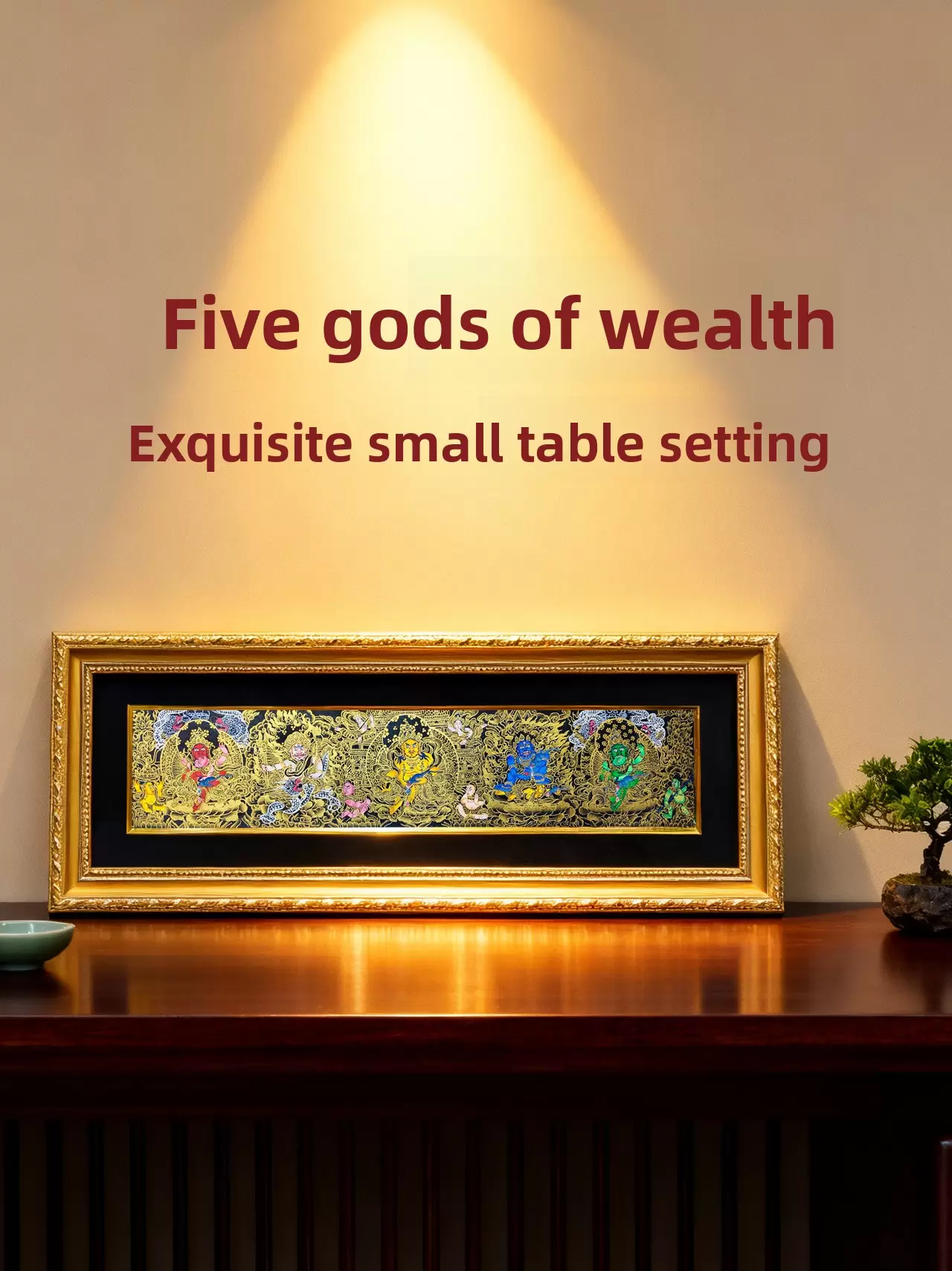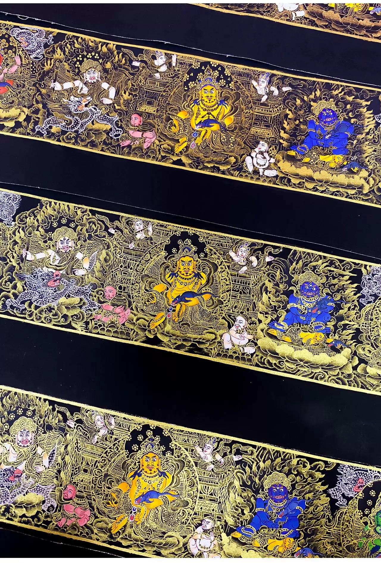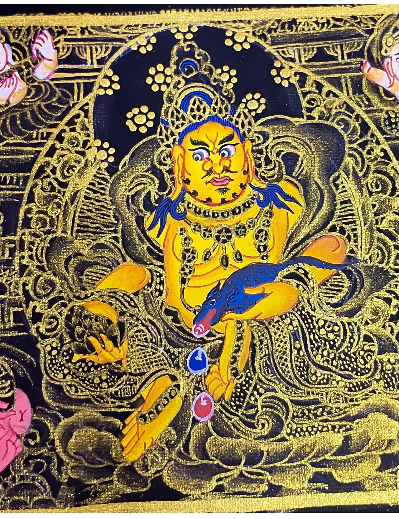Hand-Painted Thangka Yellow Wealth God Table Ornament Black and Gold Five Paths Wealth God Decorative Painting Exquisite Decorative Piece