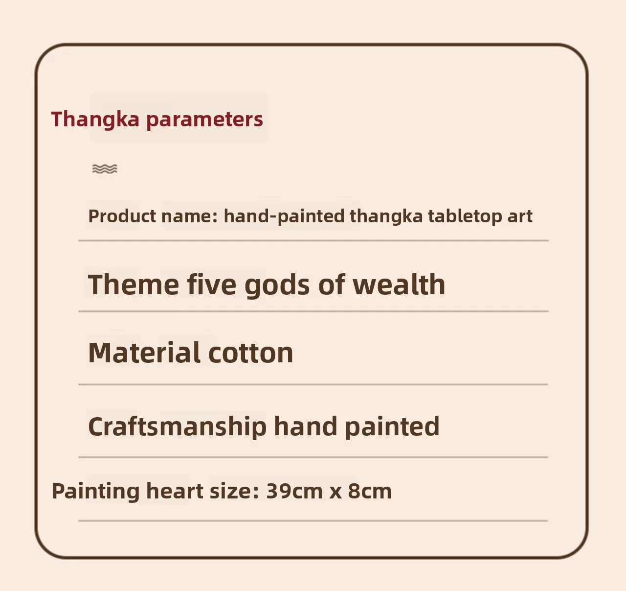 Tibetan art is predominantly ceremonial in nature. Its most common use accompanies religious rituals. The primary purposes of Tibetan thangkas can be divided into two categories: teaching and meditation. Typically depicting Buddhist deities, they also portray Buddhist narratives or scenes, illustrating the life of the Buddha or Tibetan historical contexts, and showcasing quintessential Tibetan landscapes. It is precisely through adherence to these practices that the thangka art of Tibetan Buddhism gains sacred power. Thus, you can use it to support your spiritual cultivation. It displays the Buddha in various states of mind: meditating, preaching, teaching, or supported by other deities. He also appears in scenes involving humans and animals.