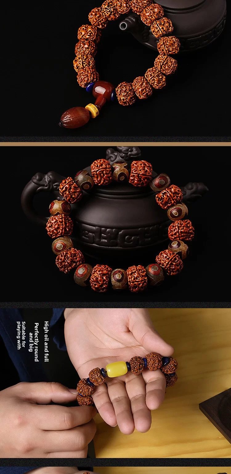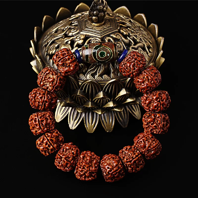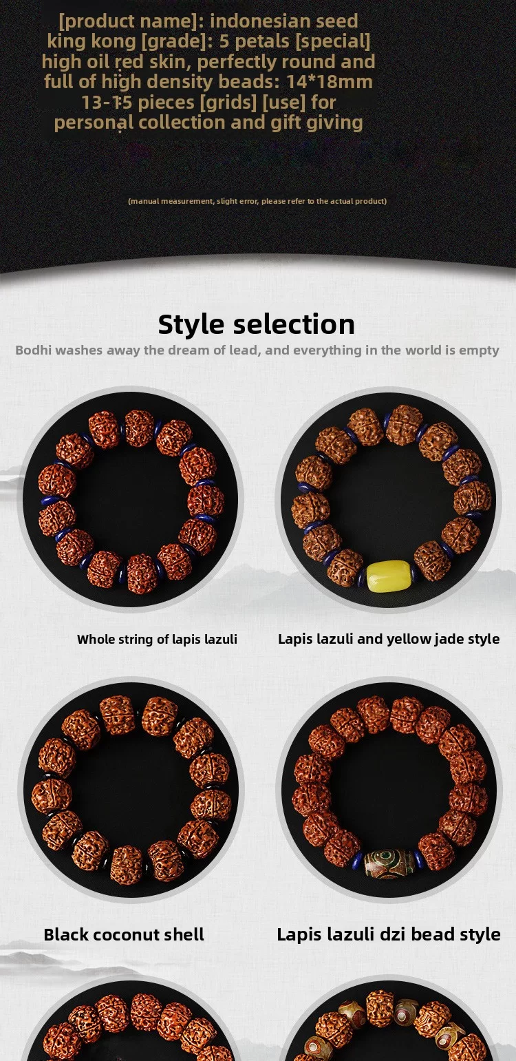 Five-to-six-petal size Bodhi seed bracelet with burst-fleshed beads Men’s and women’s red-hued bracelet