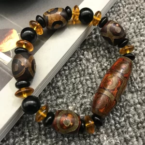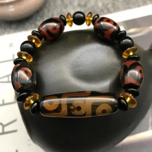The relics of the ancient Zhangzhung Kingdom, legends of the snow-capped plateau—heavenly bead bracelets carry three millennia of civilizational codes. Archaeology confirms that during the ancient Zhangzhung period 1,800 years ago, heavenly beads had already become sacred objects exclusive to nobility, revered as “stones from heaven” circulating since the dawn of Tibetan civilization. From royal adornments of the Tibetan Empire to the foremost of the Seven Treasures in Tibetan Buddhism, they have traversed millennia of wind and sand, fusing the spirituality of ancient Zhangzhung with Tibetan devotion. Each celestial bead undergoes ancient craftsmanship—ground from natural minerals, steeped in herbal infusions, and consecrated through religious rituals. Their patterns, as unique as human DNA, stand as irreplaceable historical artifacts and a cultural legacy transcending time and space. ”