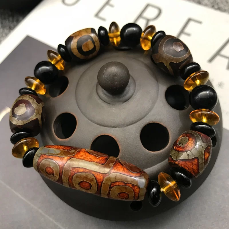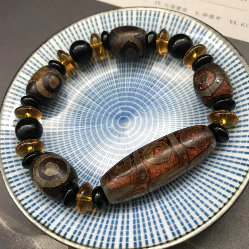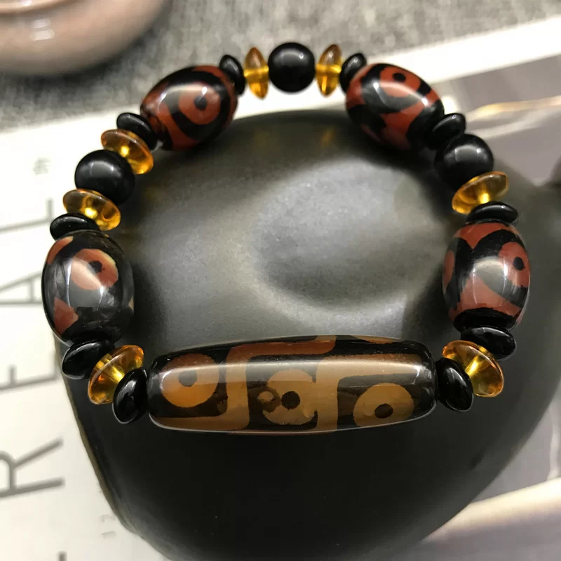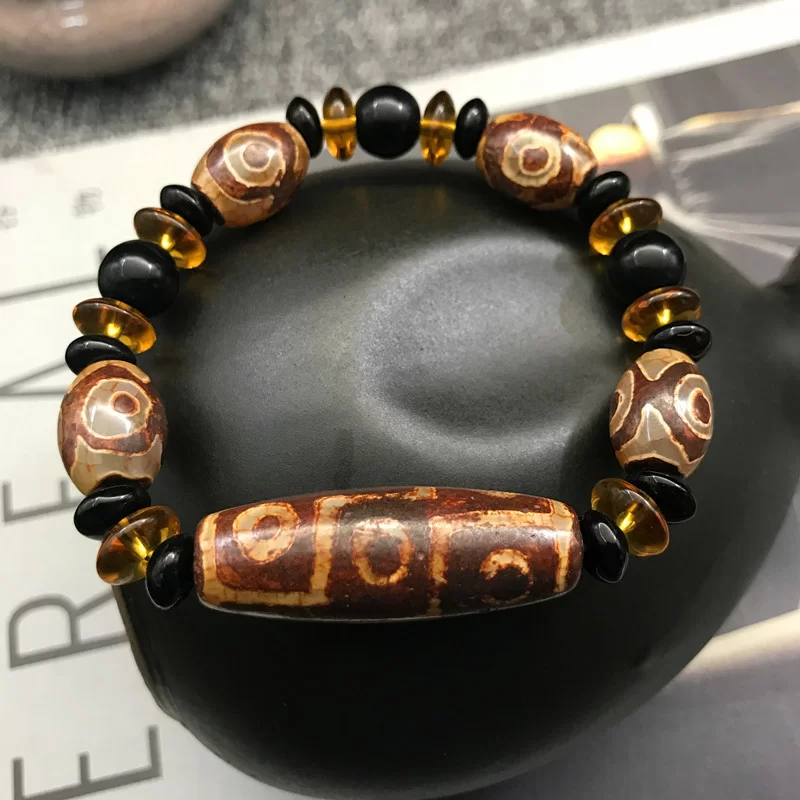 Tibetan Agate Tianzu Bead Bracelet Tibetan-Style Three-Eyed Bracelet Handcrafted Cultural Artifact