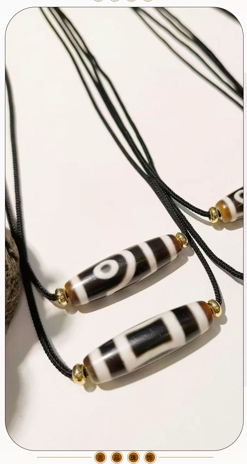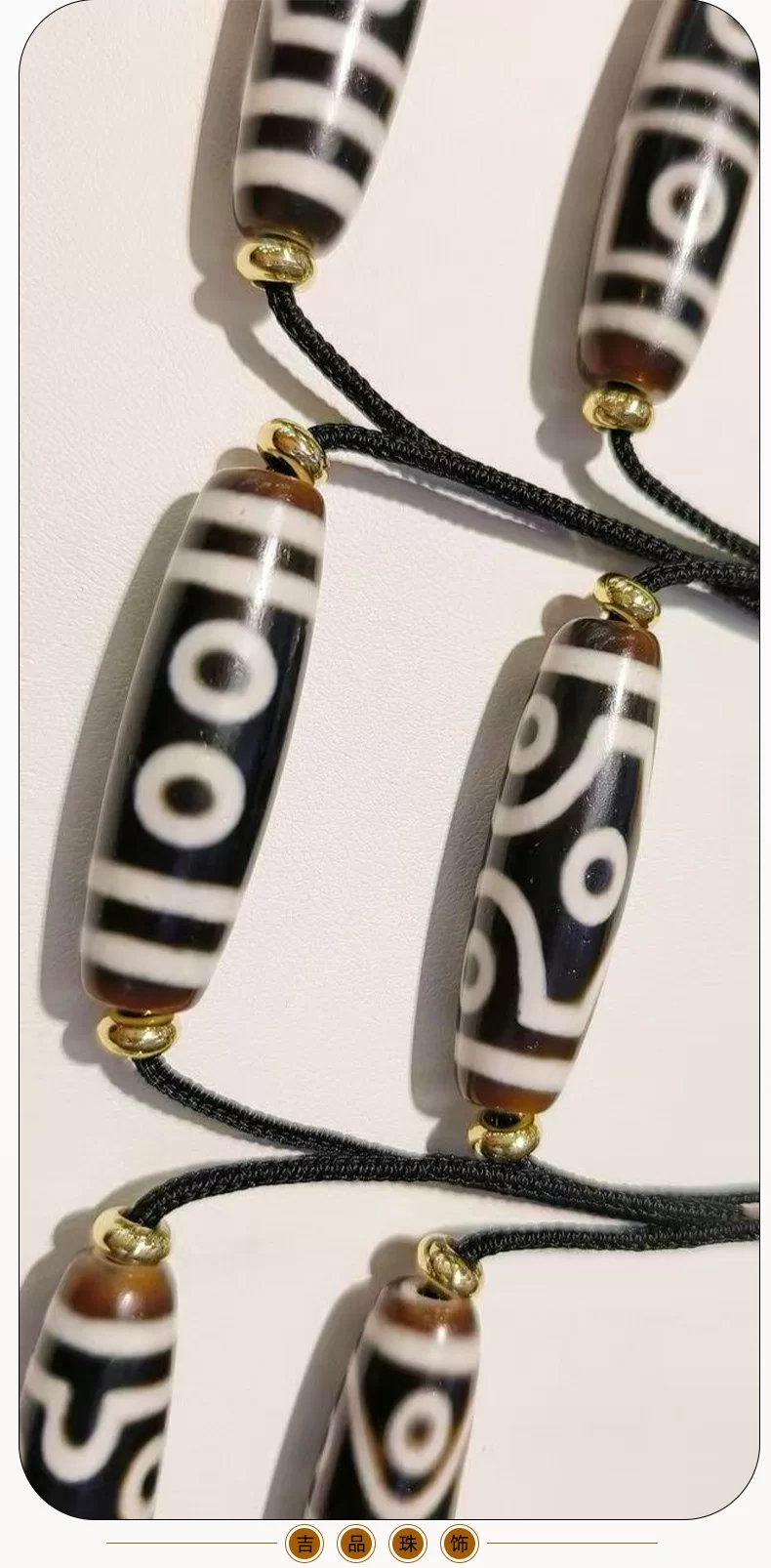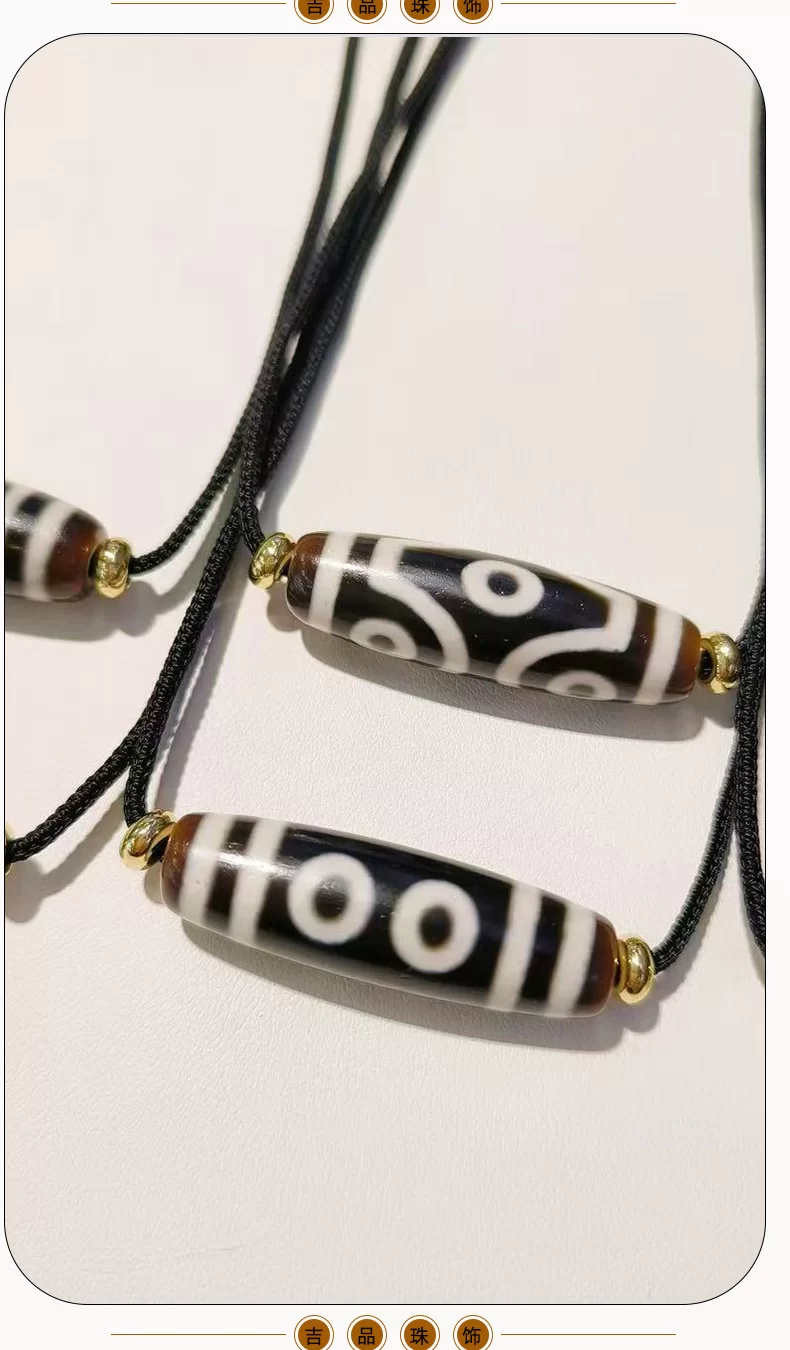 The single-eyed celestial bead is the core symbol of the “heaven-sent stone,” representing “unique blessings.” The double-eyed celestial bead symbolizes “marital harmony and unity,” echoing the folk imagery of “lotus blossoms growing side by side” and “intertwined branches.” It is regarded as a talisman for marital harmony and family bliss. The three-eyed celestial bead epitomizes “fortune, prosperity, and longevity,” embodying the aspiration for “auspicious stars aligning and wealth flowing endlessly.” It ranks among the most cherished celestial bead varieties among Tibetan people.The Four-Eyed Heavenly Bead symbolizes “peace and smooth progress,” the Five-Eyed Heavenly Bead represents “the convergence of the Five Paths of Wealth,” and the Six-Eyed Heavenly Bead embodies “smooth sailing in all endeavors.” These correspond to the auspicious aspirations of “warding off calamities and resolving misfortunes, while achieving harmonious wealth,” and are regarded as talismans for “career success.” The seven-eyed celestial bead symbolizes the “seven great blessings,” representing the fulfillment of health, wealth, reputation, longevity, wisdom, achievement, and marital harmony. It is regarded as a sacred object that grants “desires fulfilled.” The eight-eyed celestial bead represents “wealth from all directions and universal smoothness.” Its eight concentric patterns align with the folk belief of “protection from all eight directions,” embodying auspicious energies from the east, south, west, north, southeast, southwest, northeast, and northwest. The nine-eyed celestial bead symbolizes “supreme blessings,” embodying the ultimate aspiration for “freedom from suffering and perfect fulfillment.”