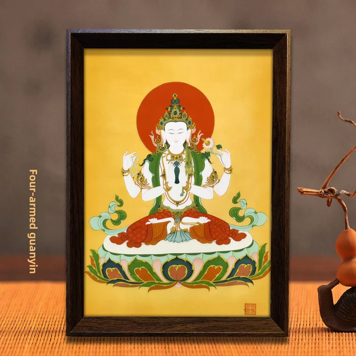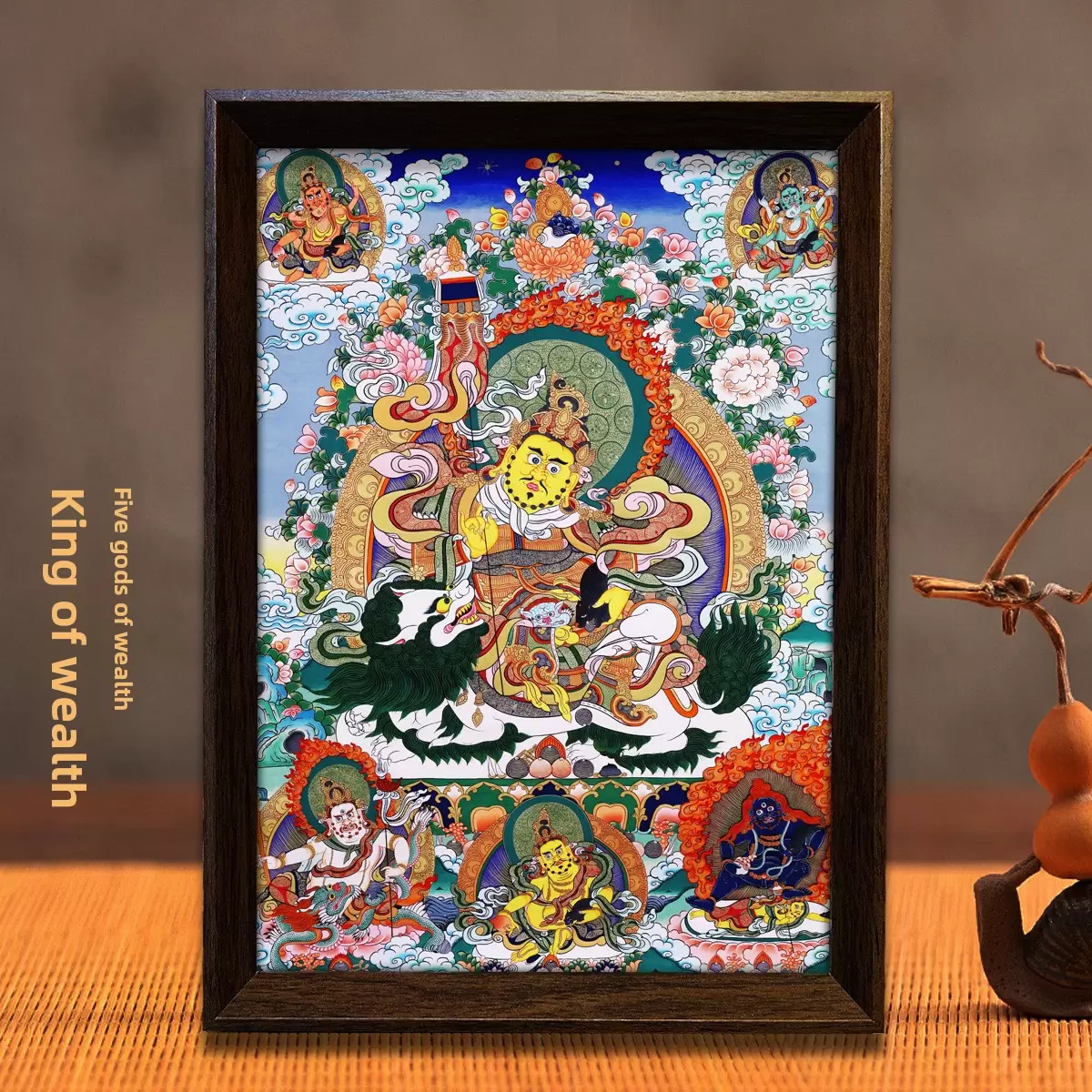 Color Five Paths Yellow Wealth God, Five Paths Wealth God, Wealth King, Wealth King A, Shakyamuni Buddha, Shakyamuni Buddha (Monochrome), Amitabha, Amitabha Buddha, Pure Land, Five Forms of Manjushri, Manjushri Bodhisattva, Four-Armed Avalokiteshvara (Colorful Thangka), Four-Armed Avalokiteshvara, Green Tara (21 Taras), Green Tara, Thousand-Armed Avalokiteshvara, Padmasambhava, Guru Rinpoche, Eight Manifestations of Guru Rinpoche, Mahavairocana, Black Mahakala, Mahakala, Yellow Wealth Deity, Yellow Wealth Deity A, Medicine Buddha, Treasure Canopy Protector, Vajrapani, Vajrapani, White Tara, Aksobhya Buddha, Chakrasamvara 1, Chakrasamvara 2, Chakrasamvara 3 Style Modern Minimalism