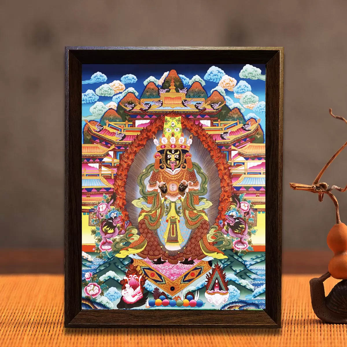 Early thangkas were predominantly large scrolls, primarily serving the religious practices of Tibetan Buddhism. They were designed for devotees to carry with them for worship, fulfilling the need for portable devotion in nomadic lifestyles. As time progressed, thangka art evolved continuously. It saw initial development during the Early Propagation Period of Tibetan Buddhism, experienced a revival in the Later Propagation Period, and reached its zenith during the Ming and Qing dynasties. This period witnessed the emergence of numerous painting schools—including those from Ü-Tsang, Tsangpo, Amdo, and Kham—with artistic styles becoming increasingly refined. The emergence of thangka tabletop displays represents a clever fusion of traditional thangka art with modern living spaces. They distill the core techniques and cultural essence of traditional thangkas, condensing large scroll works into exquisite tabletop ornaments. This preserves the sacredness and exquisite craftsmanship of thangkas while adapting them to contemporary home and office display needs, allowing this millennia-old religious art to step beyond monastery chapels and become accessible, everyday cultural treasures.